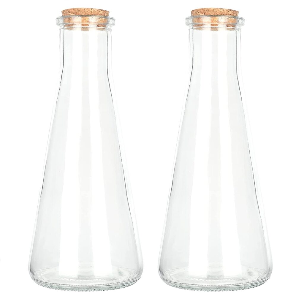 These containers are made out of glass and cork, they are reusable and pretty, win win!